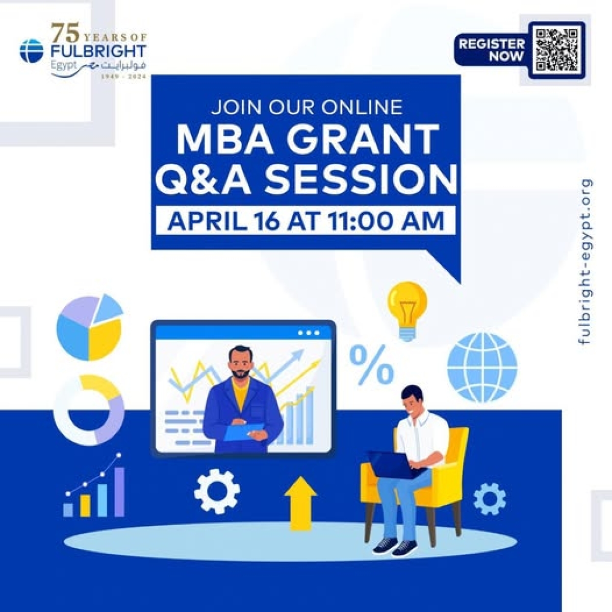 تعلن هيئة فولبرايت مصر عن فتح باب التقديم لمنحة الماجستير في إدارة الأعمال الخاصة بأعضاء هيئات التدريس بالجامعات والباحثين بمراكز البحوث. ستعقد ندوة تعريفه اليوم الساعة ١١ صباحاً لشرح البرنامج. لحضور الندوة برجاء الضغط على الرابط التالي: https://us06web.zoom.us/j/88649840465... ولمزيد من المعلومات عن المنحه برجاء الضغط على الرابط التالي:https://fulbright-egypt.org/program/ulmba/